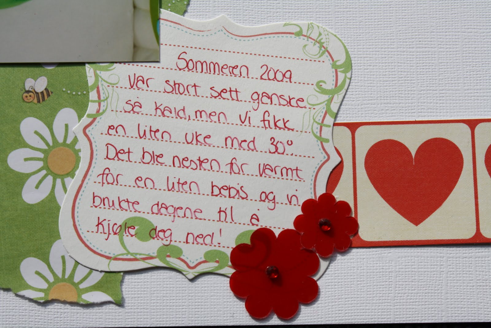 Det gikk plutselig opp fpr meg at babyen min var blitt en liten gutt...1 år har Jonthan blitt! Han krabber, reiser seg opp og står uten støtte. Han spiser ordentlig mat, smiler, ler, tuller og prater. Han forstår mer og mer, og han kan gjøre seg forstått på flere måter. Selvfølgelig er det ikke noe enestående med en slik utvikling, det skjer vel de fleste ;-) Men jeg ønsket likevel å lage en LO med dette temaet, for å få frem noen ord rundt dette. Denne LO'en er mitt bidrag til Scrappehuset - Fortell historien, hvor journalingen skal være en stor del av det man velger å lage. Og for orden skyld...jeg kaller nå Jonathan for babyen min enda, det får han bare tåle!!